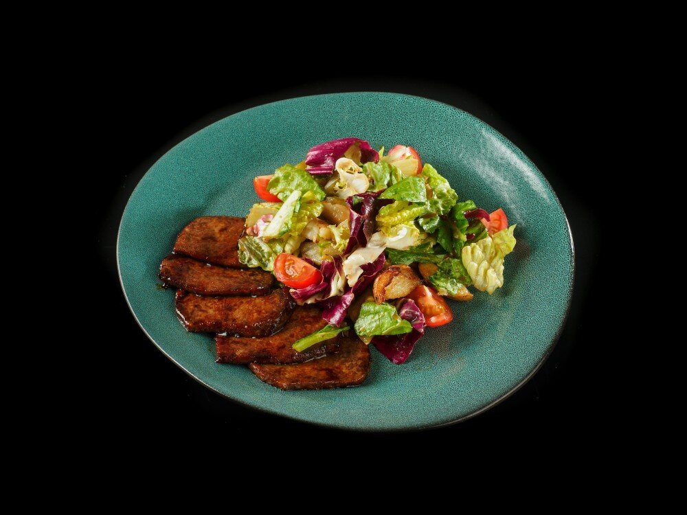 Стейк-салат (тёплый) с мясом бычули, овощами-гриль и устричной заправкой