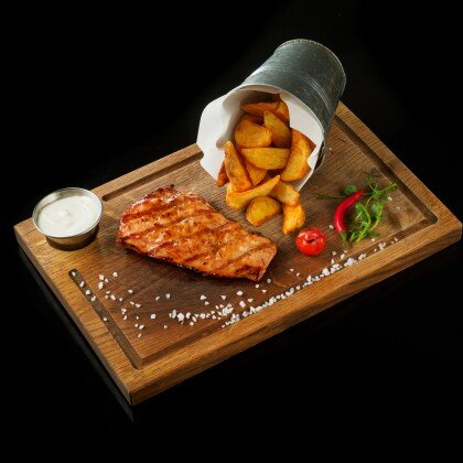 Грудь индюшки с соусом дорблю и дольками картохи в кожуре