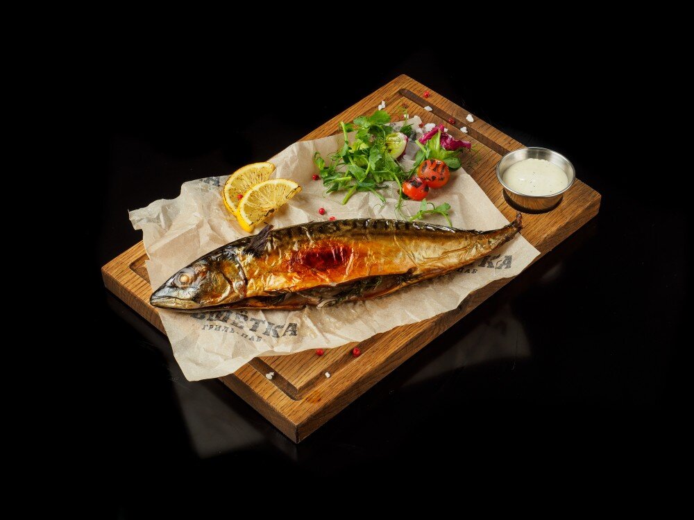 Скумбрия, запечённая на гриле с укропом и лимоном, подаётся с соусом тартар