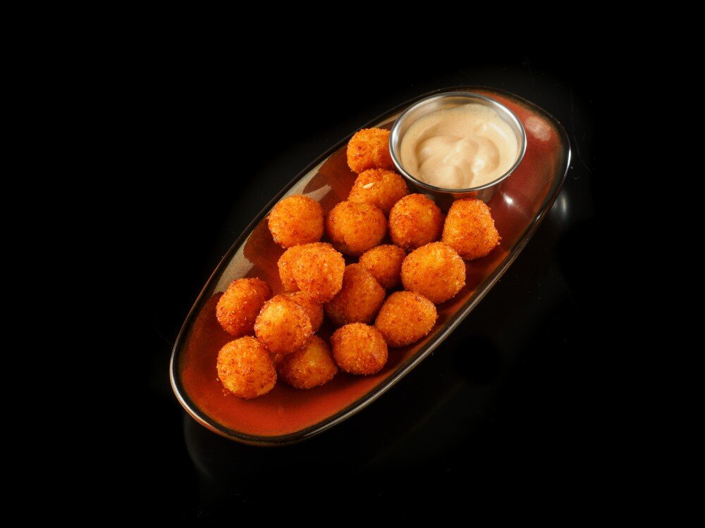 Хрустящие сырные шарики со жгучим соусом кимчи
