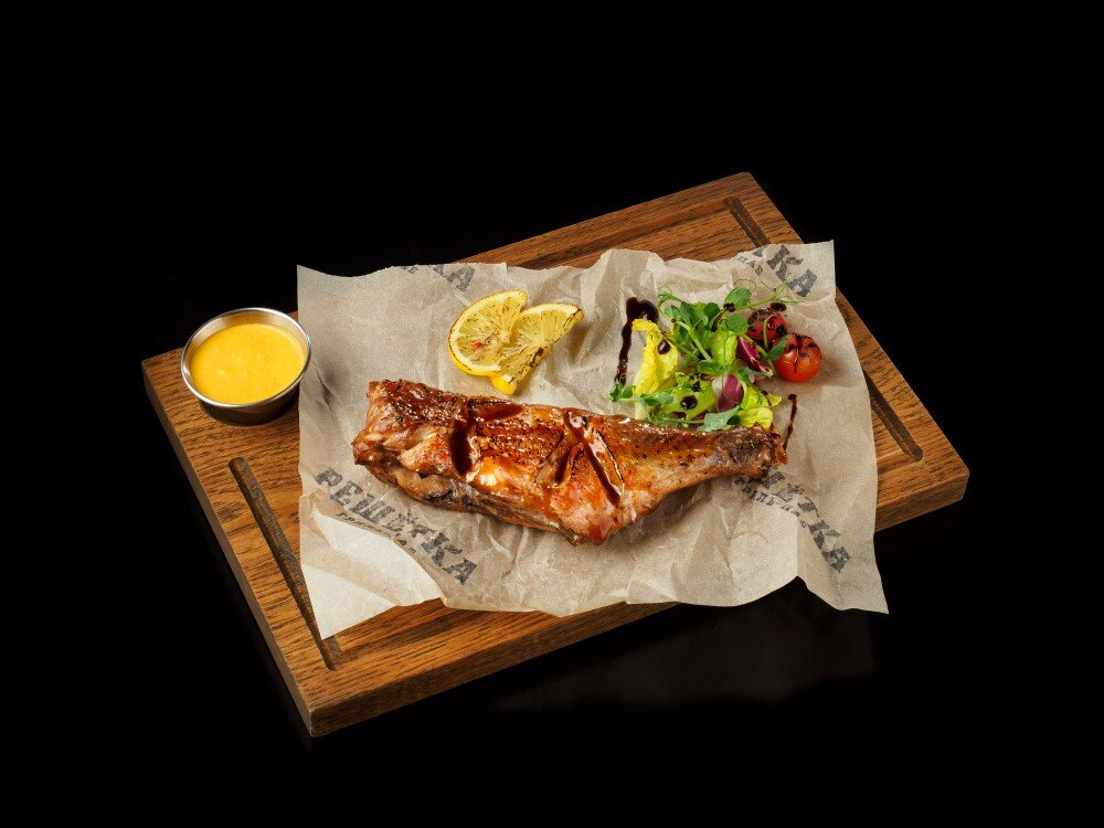 Морской окунь, обжаренный на гриле, с нежным соусом